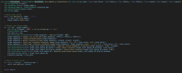 I then began working on a fully fledged trajectory generator given an array of cartesian positions. The trajectories I got were from a CODAMotion camera sensor, which provide 400Hz timestamped cartesian positions of a camera-tracked object. The function starts by taking in a csv of the trajectory points, transforming them so they start in the same spot, adding elevation changes so the manipulator moves down/up until it touches/leaves the surface, performing IK (this algo also accounts for singularities and discontinuities due to non-invertible Jacobians or position error non-convergence in finite number of iterations), adding a speed factor (linear interpolation) to slow down the trajectory (since Coda goes at 400Hz but Kinova runs at 1kHz so Kinova would try and run through points 2.5x faster), ensuring joint are within accel. and velocity limits using differentiation and adjusting the syntax to command joints to Kinova.