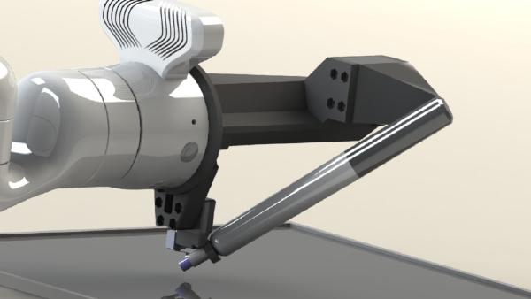 The end effector is designed for you to grasp on to a whiteboard marker and be guided through a handwriting motion