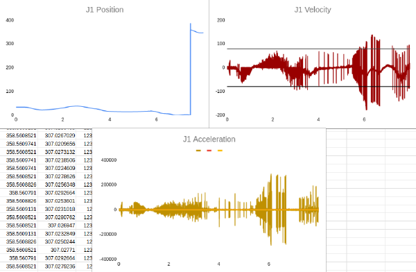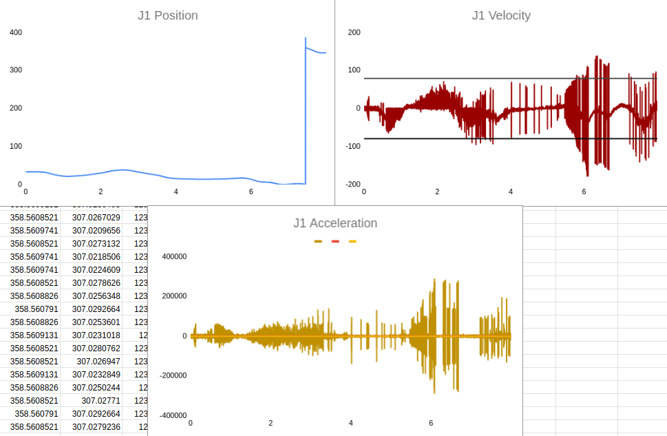 When we tracked the robot’s trajectory using its encoders, we saw well out-of-bound and noisy kinematic profiles